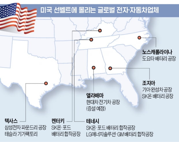 글로벌 電·車 빨아들이는 美 남동부 선벨트…세금·인건비 낮고 고용환경 유연