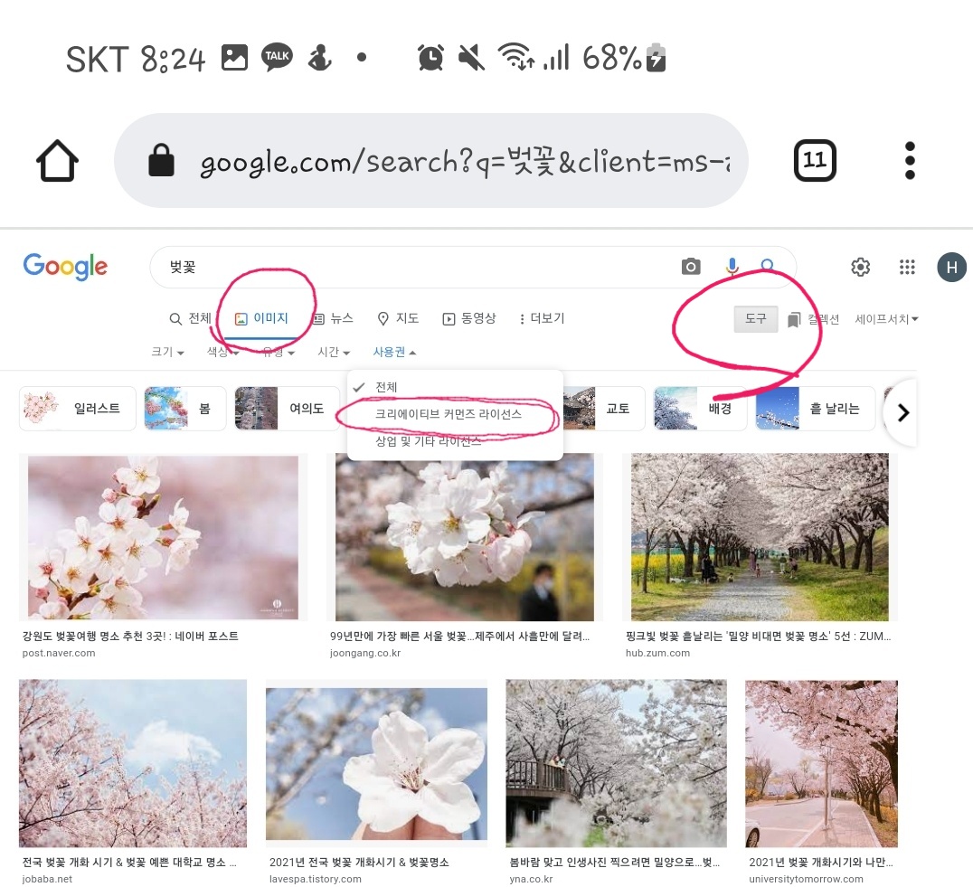 구글에서 저작권 걱정 안되는 이미지를 이용하고 싶다면 이렇게 설정하면 된다.