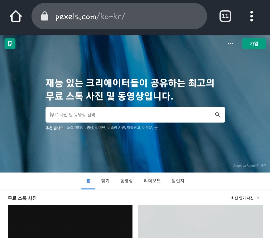 자유 저작권 고해상도 사진을 무료로 제공하는 인터넷 사이트이다. 저작권이 자유이기 때문에 유튜버들에게 인기가 많다. 회원가입을 하지 않아도 되지만 한국어로 검색이 안되기 때문에 영어로 단어를 검색해야 한다.