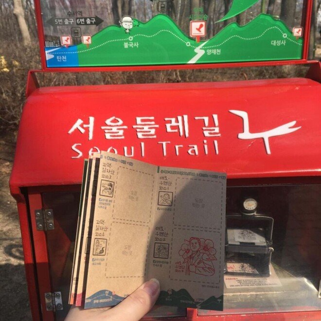 2 길을 걸으며 비치된 도장을 스탬프 북에 찍기