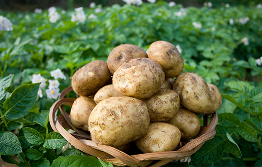 - 땅에서 나는 사과라고도 하는 감자는 6월이 제철이다. 감자는 녹말과 함께 단백질, 무기질, 비타민C와 B1, B2, 나이아신 등 몸에 꼭 필요한 영양소가 많이 들어있는 채소다. 그리고 감자에는 나트륨을 배출해주는 칼륨이 많아서 고혈압과 당뇨가 있는 사람에게도 도움이 된다. 또한, 식물성 섬유질인 펙틴이 들어있어 변비에 좋고, 이뇰린 성분이 체지방을 분해하는 다이어트 식품이다.