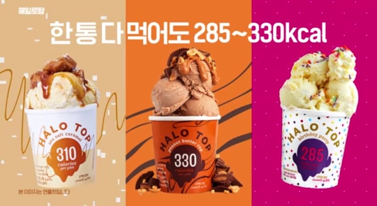 헤일로탑 아이스크림의 당류 함량은 24~30g(파인트 기준)정도로 매우 낮은 편이지만 단백질은 19g으로 기존 제품들보다 함량이 높은 편이다.