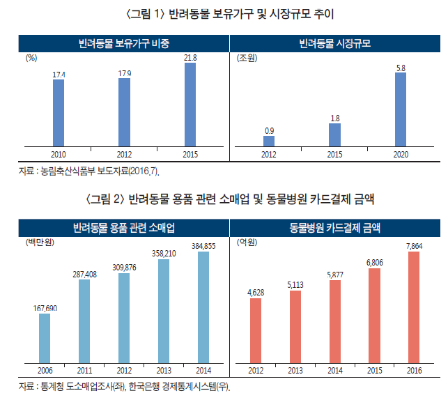 한국의 경우, 다른 나라에 비해 반려동물 시장 활성화가 늦은 편이다, 그래서 이전에는 해외 수입의존도가 높은 편이었다. 하지만 최근 반려동물 시장이 활성화 되면서 그만큼 상품들이 이제 막 다양해지고 있다. 이렇게 여러가지를 고려한 상황을 봤을 때, 아직까지는 충분히 새롭게 나올 수 있는 서비스들이 많다고 생각한다. ( 산업연구원 > 보고서 >정기간행물 >KIET 산업경제, 국내 펫코노미(Pet+Economy) 시장의 현황과 시사점)