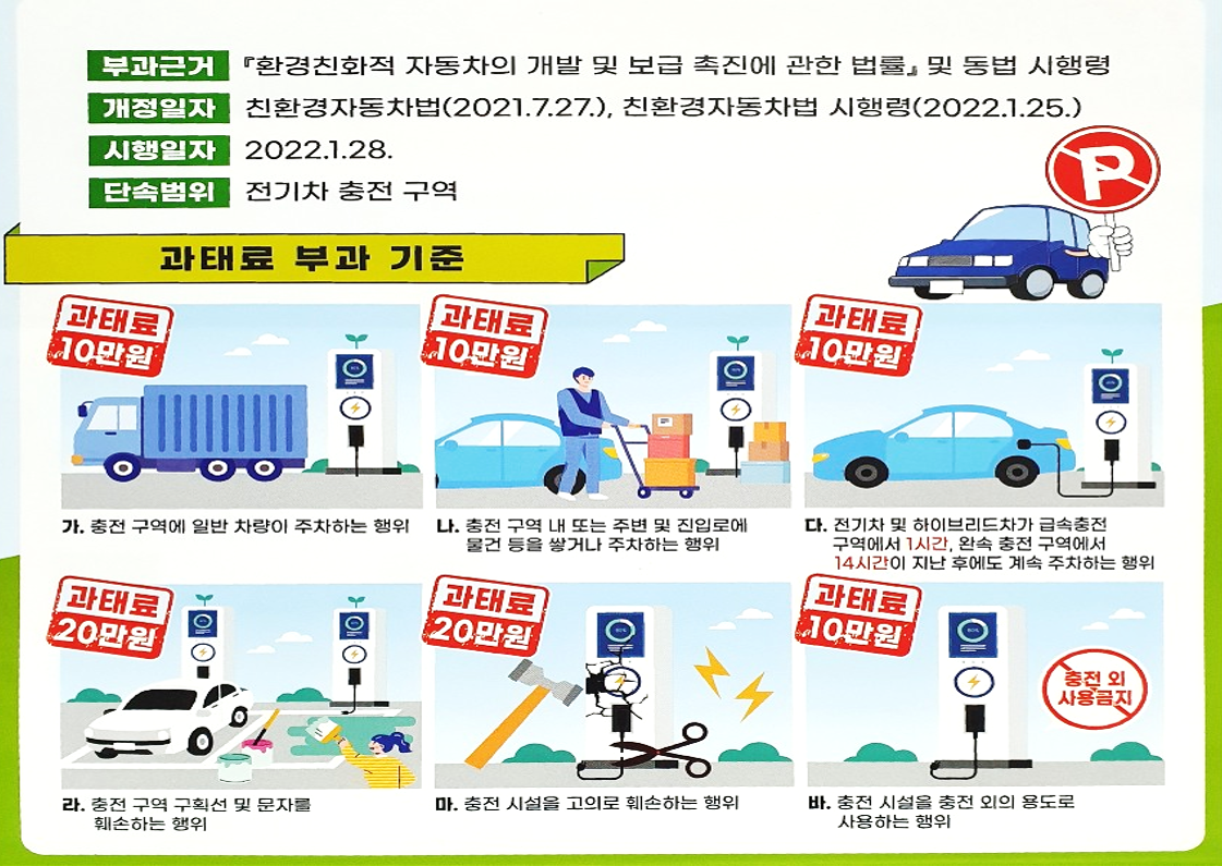 전기차 전용 충전 구역 위반 과태료 부과 기준