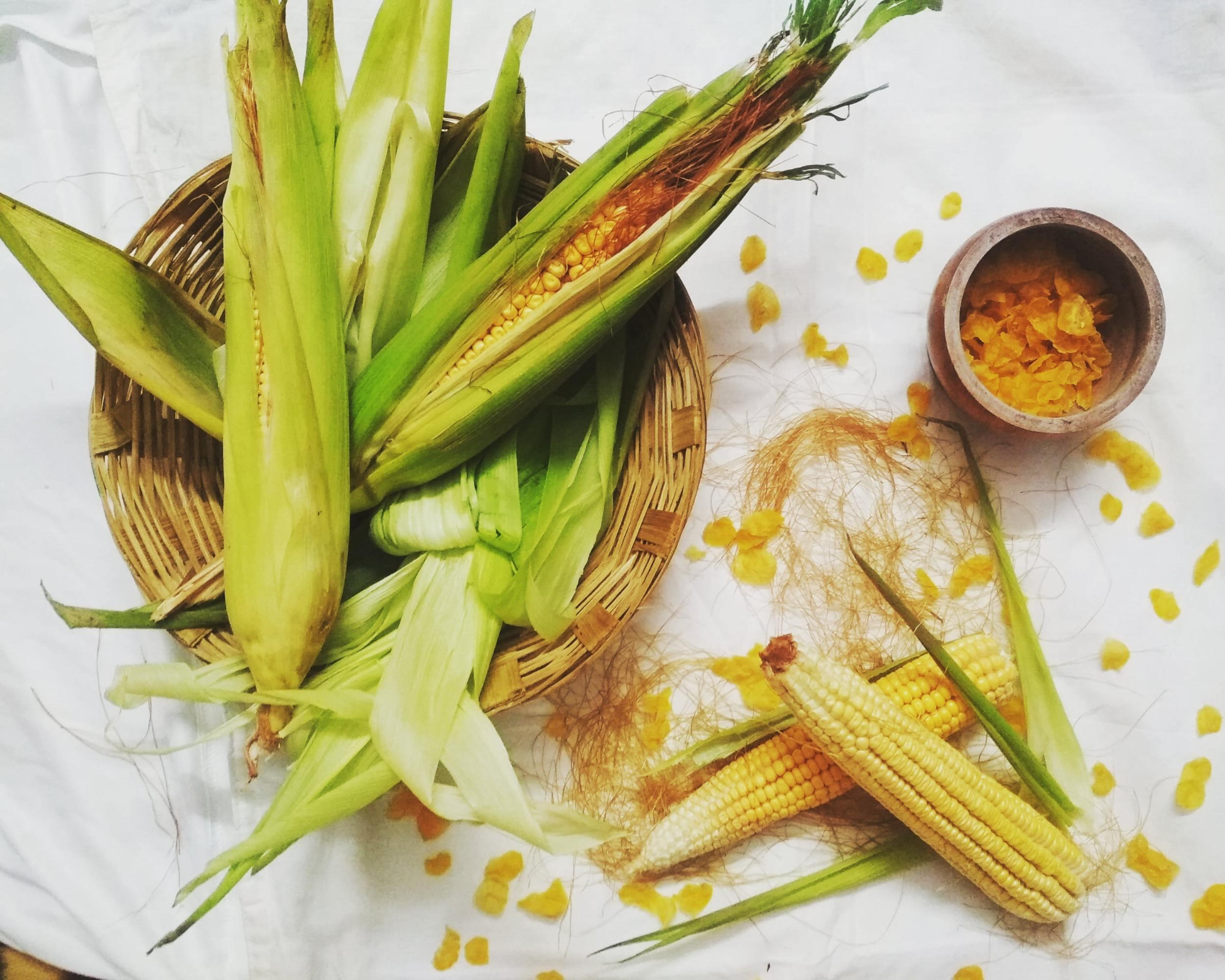 옥수수에 붙어있는 옥수수 수염은 이뇨작용에 좋아, 원활한 배뇨와 부종 제거에 효과가 있다. 그리고 비타민 B와 E가 풍부해 노화 방지, 피부 저항력 증가, 심혈관 질환 및 암 예방, 면역력 증가에 좋다. 뿐만 아니라, 옥수수에 들어 있는 루테인 성분은 눈 건강에 좋다. 옥수수는 알맹이가 촘촘하고 수염이 갈색인 것이 좋다.