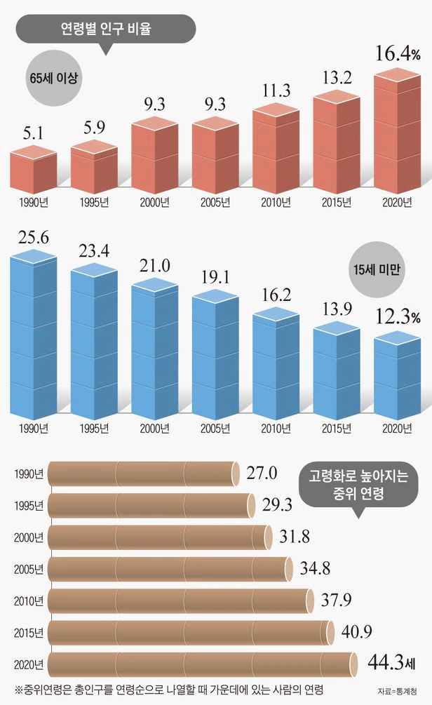 100세 시대인 요즘 시대에 출산율은 적고, 베이비부머들의 고령화가 진행되기 시작했다. 통계청에서 진행한 ’2020년 인구주택총조사'에 따르면, 지난해(2020년 11월 1일 기준) 65세 이상 노인 인구는 820만6000명으로 노인 인구 비율이 15.5%에서 16.4%로 높아졌다. UN의 기준에 따르면 65세 이상 인구가 7% 이상일 때 고령화사회, 14%를 넘으면 고령사회, 그리고 20%를 넘게 되면 초고령사회로 분류 된다. 2019년 기준 한국의 65세 이상 노인인구는 전체 인구의 15.5%에 이르며, 2025년에는 전체인구의 20%에 이르는 초고령사회라고 한다.