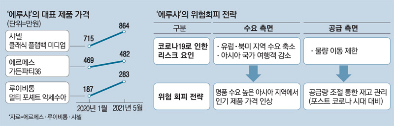 17개월간 에르메스 2번 인상 샤넬은 4번…51% 뛴 제품도 코로나에 유럽·美매출 줄자 아시아에서 이익 크게 남겨