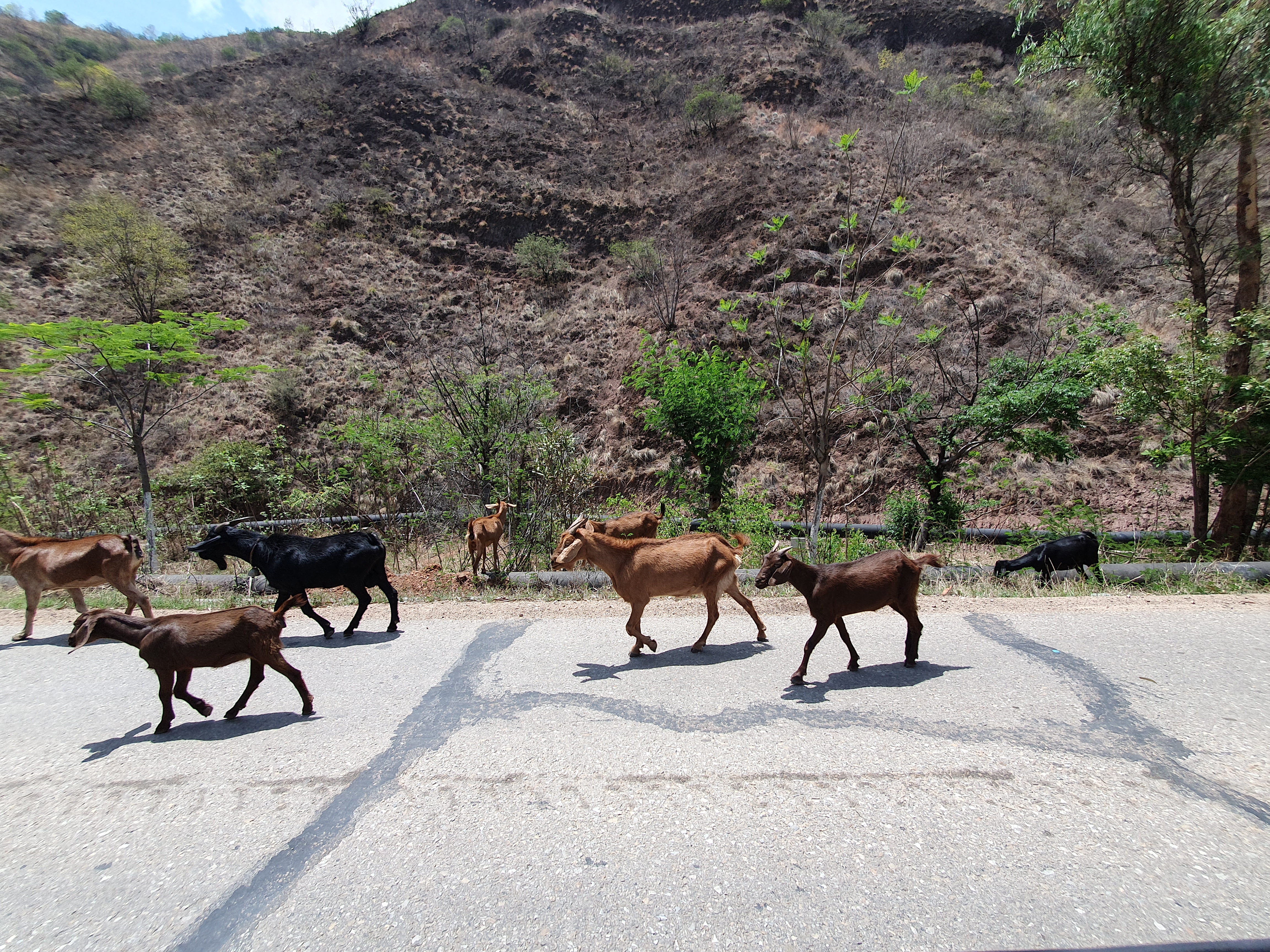 역으로 돌아가는 길에도 이렇게 도로에서 염소나 소를 쉽게 볼 수 있다. 찍으라고 기사님이 잠깐 멈춰주셨다.