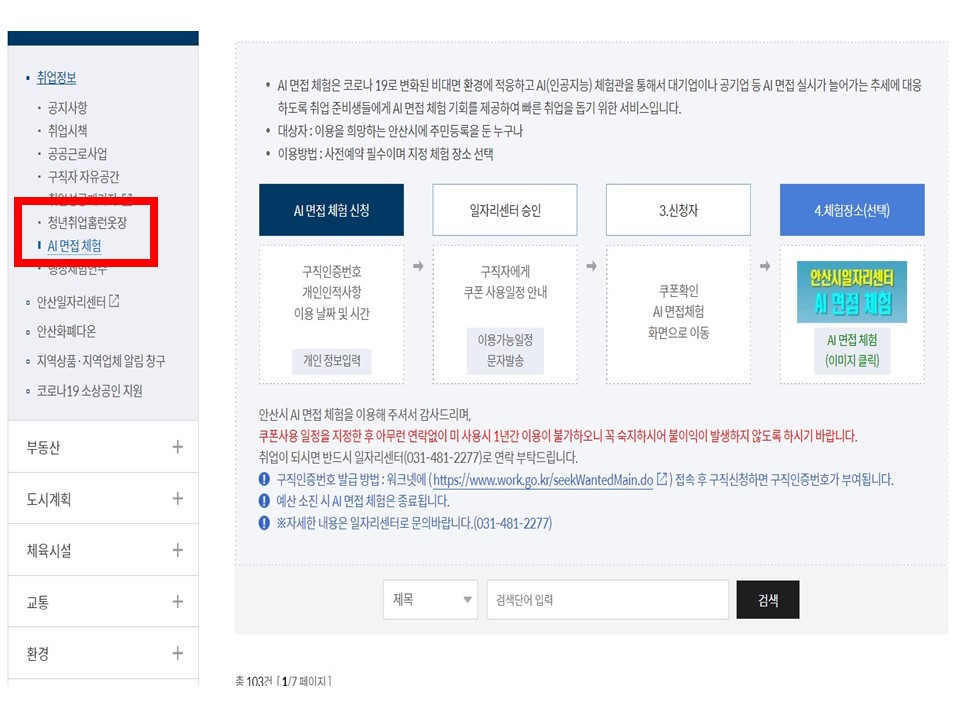 안산시 : AI 면접 체험 | 취업정보 | 경제/일자리 | 분야별정보 | 안산시청 (ansan.go.kr),