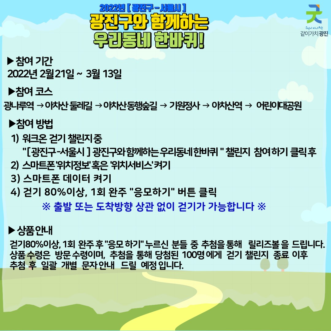 특히, 광진구에서는 다른 지역보다 다양한 행사들이 있다. 기회가 많은 만큼 다양한 상품도 받을 수 있으니, 광진구 거주자라면, 적극 참여를 추천한다.