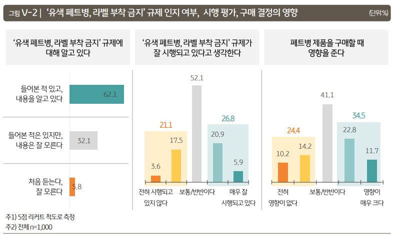 얼마 전부터 유색 페트병에 대해서도 큰 변화가 생겼다. 많은 회사에서 투명 음료수 병으로 제품을 완전히 바꾸기 시작했다. 그리고 이 페트병을 분리수거를 할 때도 큰 변화가 생겼다. 뚜껑와 페트병 라벨은 따로 분리해서 버리기 시작한 것이다. 많은 사람들이 함께 참여하면서 이제는 자연스러운 일이 되었다. 그리고 전반적으로 많은 사람들이 유색 페트병과 라벨에 대한 인식이 생겨 점차 좋아지고 있는 것 같다.