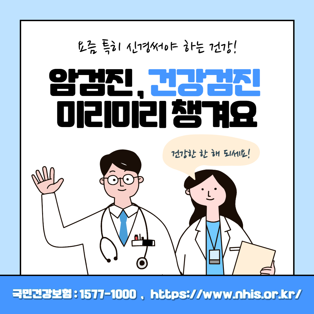 요즘처럼 건강이 중요한 시기에는 꼭 더 챙겨서 확인해야 하는 것이 있다. 바로 건강 검진과 암 검진이다. 장기화 되어가는 이 상황에서 많은 사람들의 생활 패턴도 바뀐지 오래다. 그러면서 신체에도 영향을 미치기 마련이다. 따라서, 건강 검진과 암 검진으로 미리미리 건강을 챙기는 걸 추천한다. 특히, 작년에 건강 검진을 받지 못한 사람은 올해 6월까지 기간 연장이 되었기 때문에, 6월 전까지 챙겨서 검진 받는 걸 추천한다.